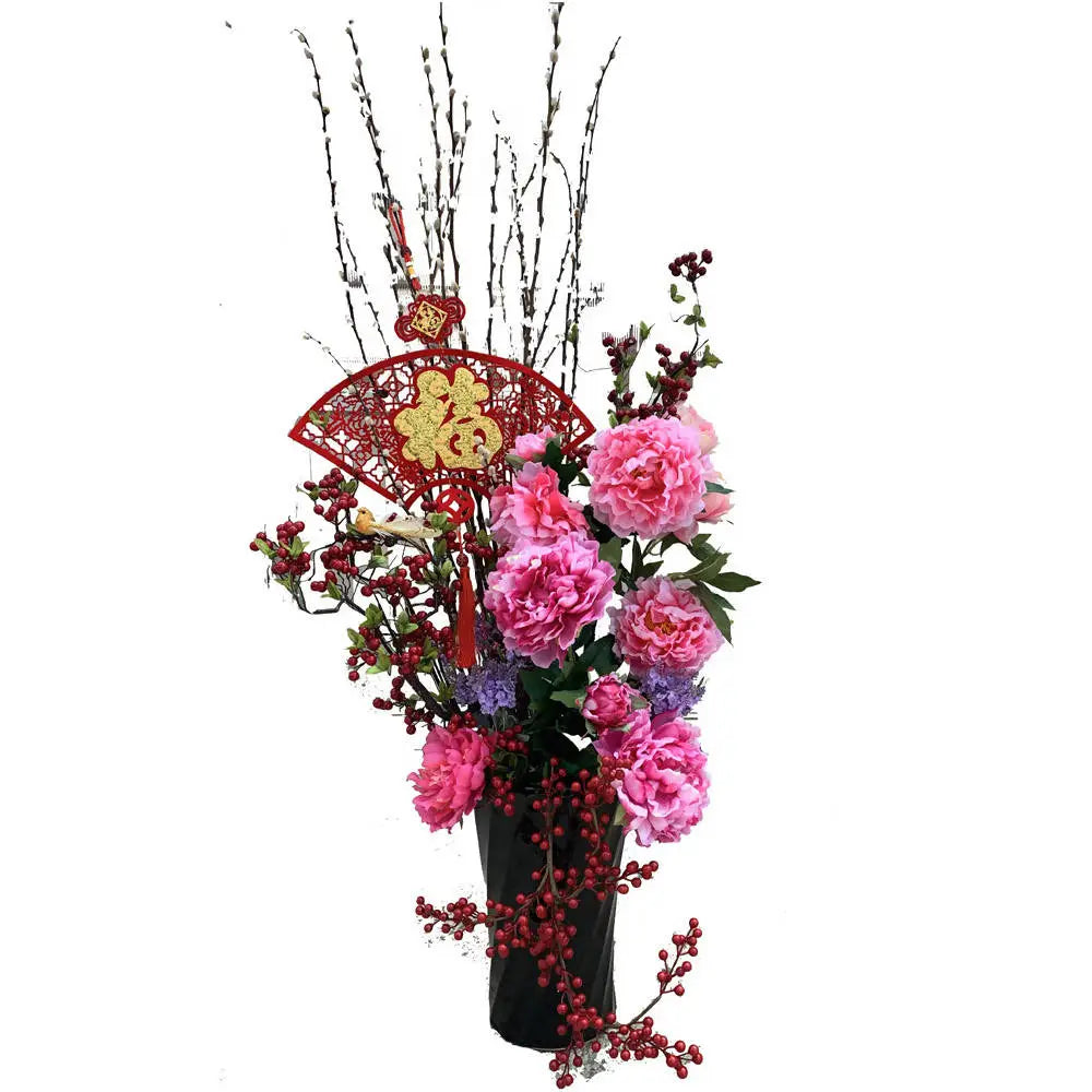 Celebrate the Lunar New Year with the elegant Prosperity Bloom: Pussy Willow & Artificial Flower Arrangement in Tall Vase. This stunning arrangement combines the timeless charm of pussy willows, symbolizing growth, prosperity, and resilience, with vibrant artificial flowers that bring color and festive cheer to your space. Housed in a sleek, tall vase, this arrangement serves as a sophisticated centerpiece for homes, offices, or event spaces during the festive season.