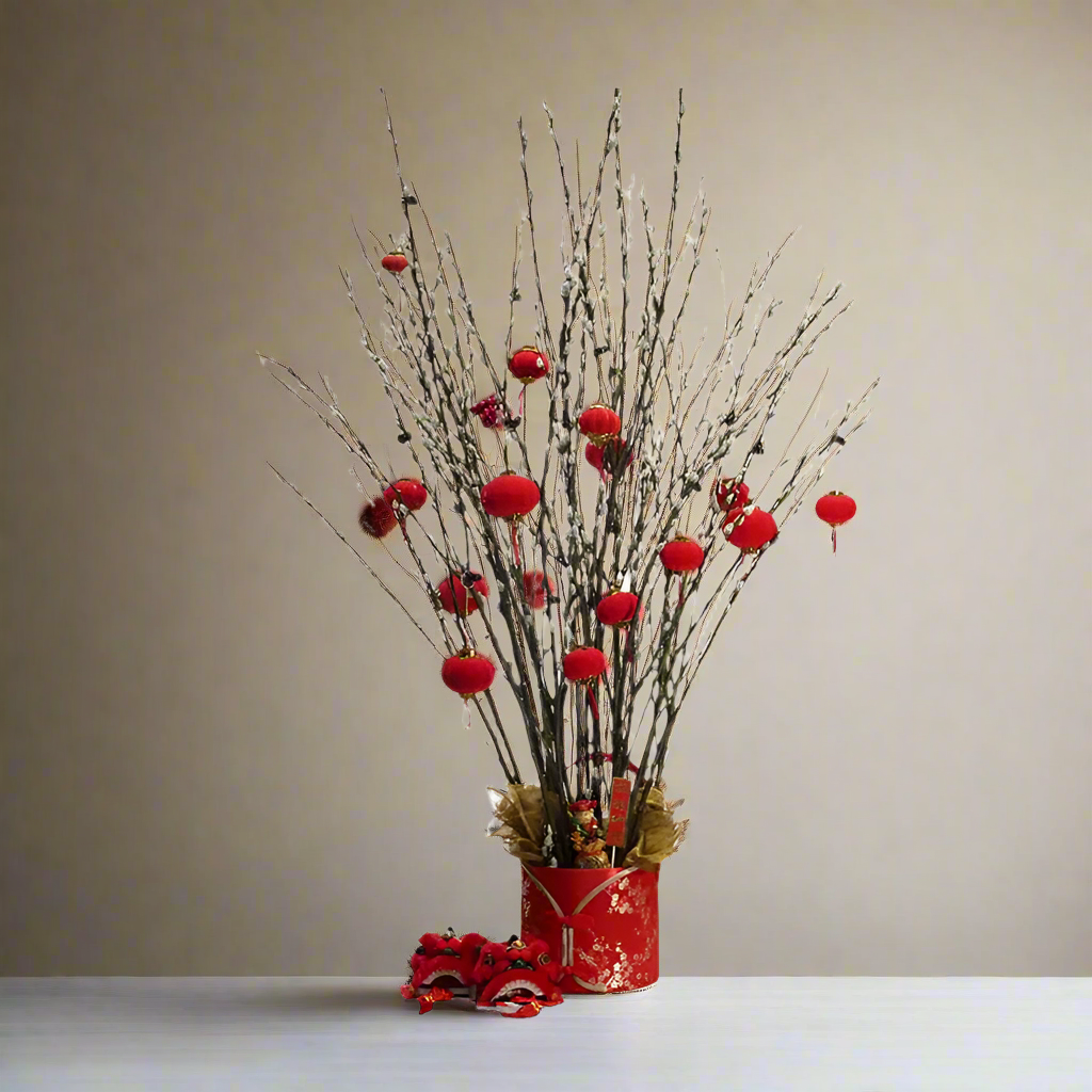 More than just a decoration, this arrangement is an enchanting invitation to welcome the new year with open arms. Display it in your entryway to greet guests with auspicious blessings, or adorn your living room with its radiant energy.